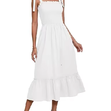Perfect Vacation & Beach Outfit Summer White Midi Dress for Women Sleeveless Tie Strap Ruffle Cotton Casual Sundress