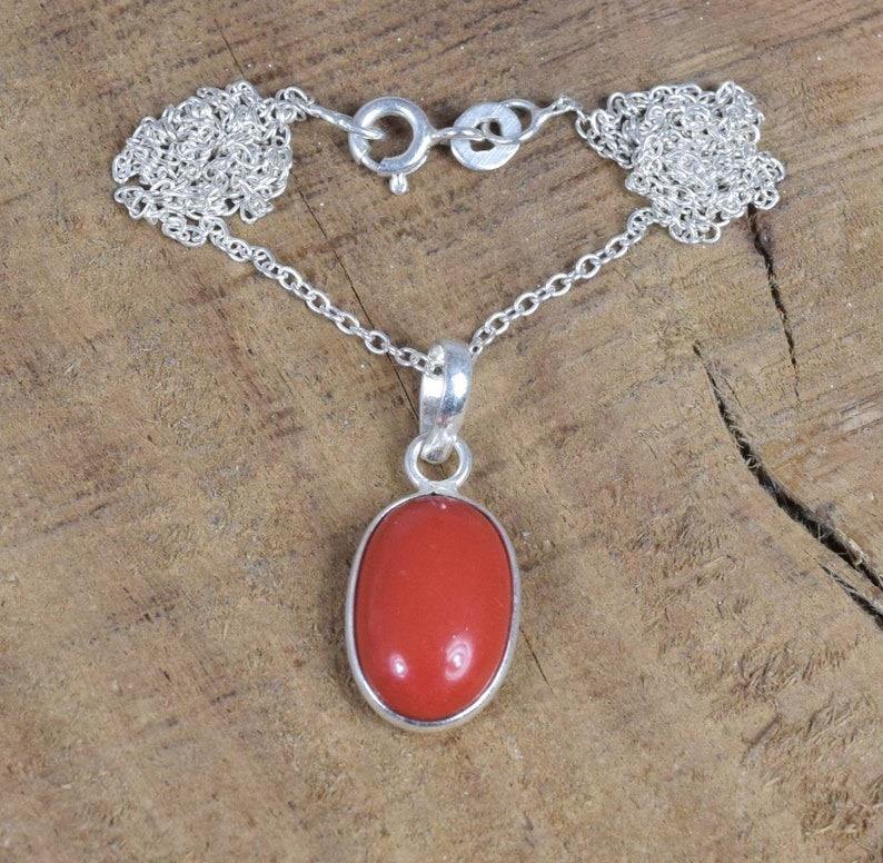 ของขวัญแต่งงานที่สมบูรณ์แบบสำหรับความรักจี้ปะการังสีแดงรูปไข่อัญมณี925จี้เงินแท้พร้อมเครื่องประดับประทับ925