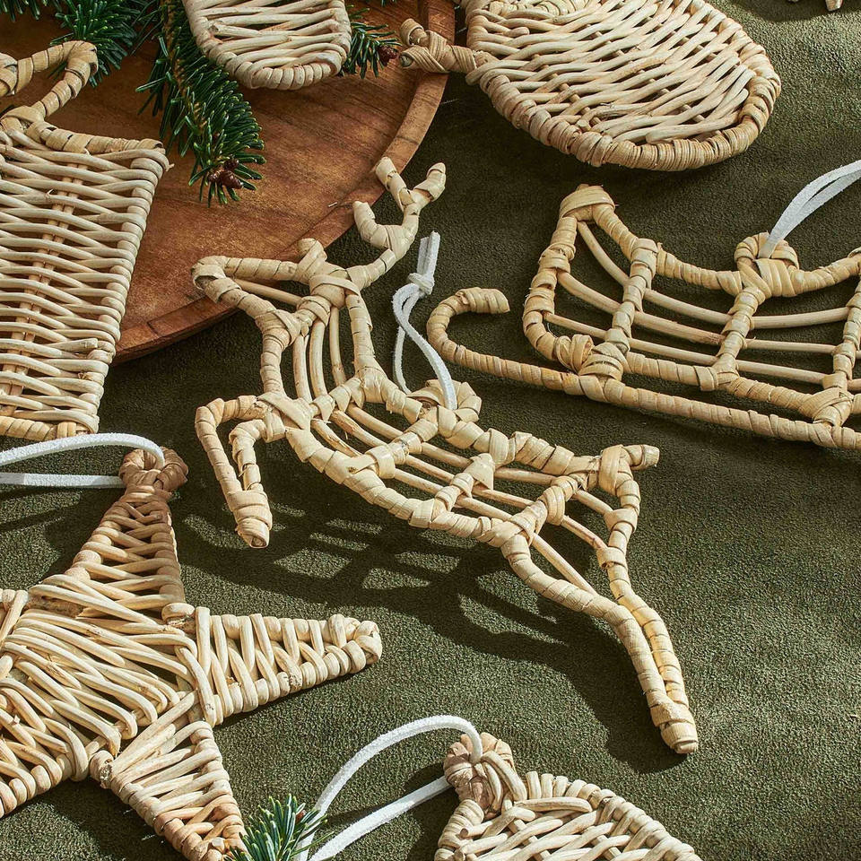 Perfectสําหรับคริสต์มาส2024น่ารักหวายReindeerเครื่องประดับVINTAGEหวายคริสต์มาสต้นไม้แขวนDecor Accentsขายส่ง