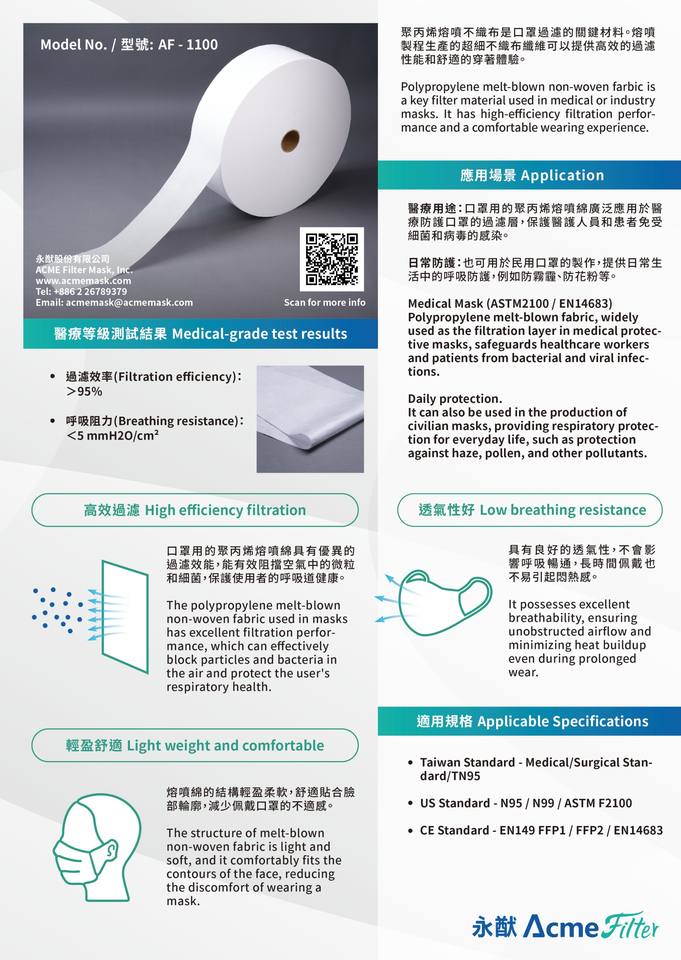 ผ้านอนวูฟเวนสำหรับหน้ากากสำหรับใช้ในการผ่าตัด