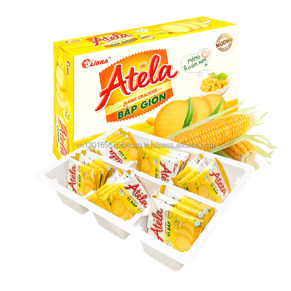 ขนมข้าวโพดอบกรอบ ATELA 342 กรัม ขนาดพอดีคำ รสชาติอร่อยกรอบ ผลิตโดยโรงงาน OEM เวียดนามโดยตรง