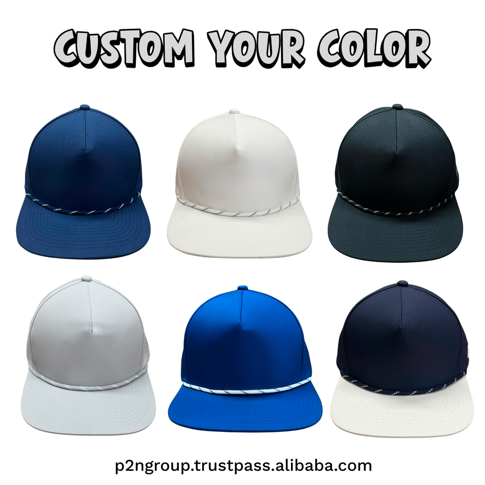 หมวกแก๊ปเบสบอลแบบ Snapback ปีกแบน กันน้ำ ตัดด้วยเลเซอร์แบบมีรู โลโก้ PVC ยาง พร้อมเชือก สำหรับกีฬากอล์ฟ แบบสั่งทำได้