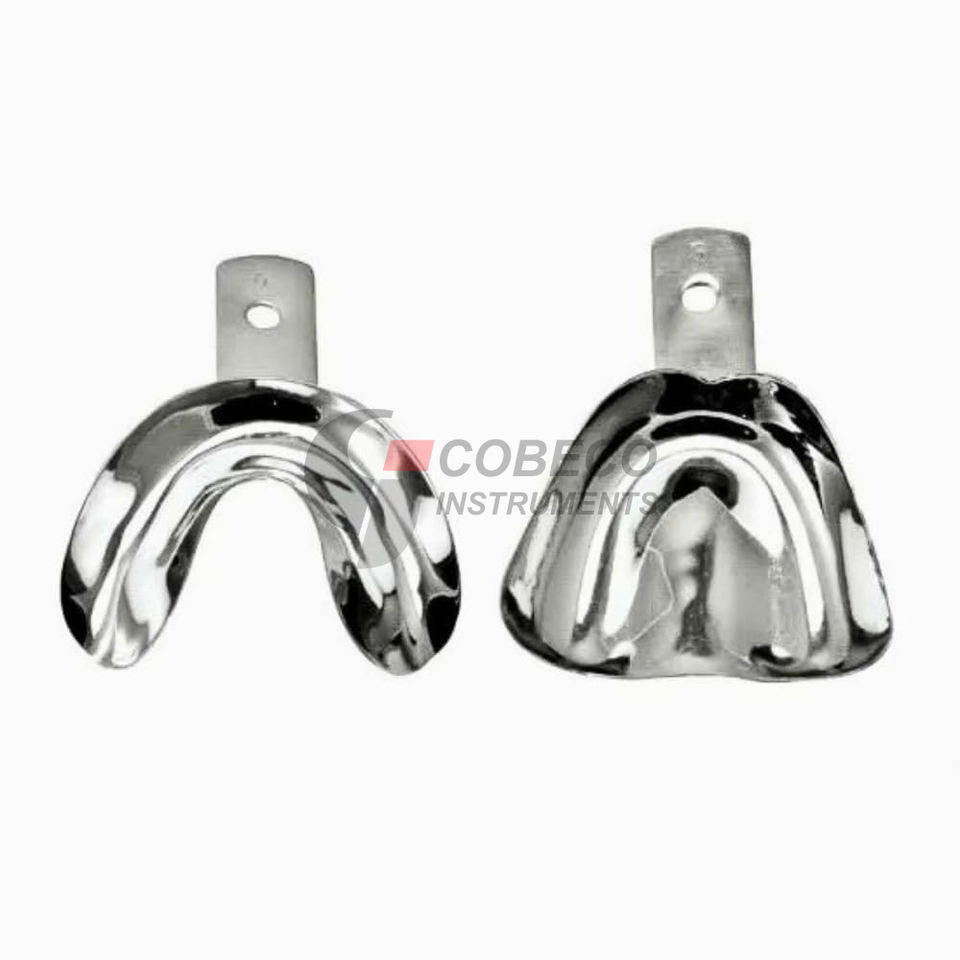 ถาดใส่ฟันปลอมแบบเจาะรู ขนาดมาตรฐาน ชุดสแตนเลส ทนความร้อน ใช้ได้กับฟันปลอมแบบเต็มปาก บน-ล่าง ใช้กับอัลจิเนตและซิลิโคน