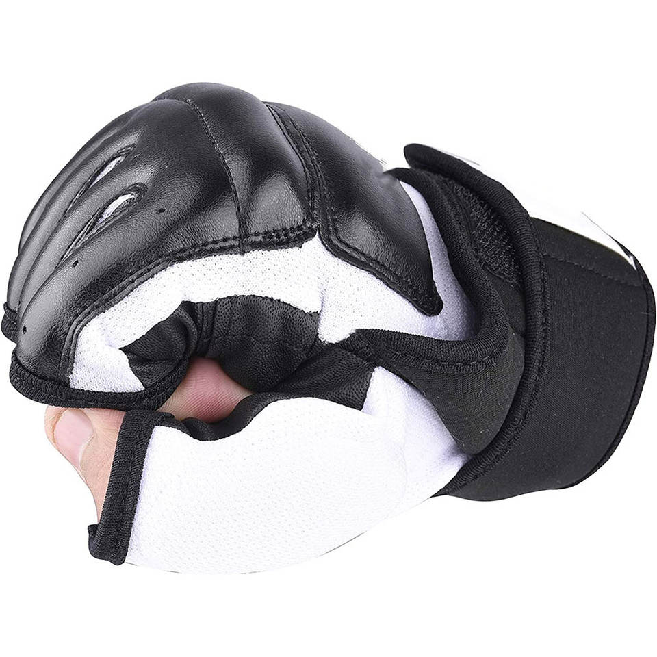 ถุงมือ MMA แบบเปิดนิ้ว ให้ความยืดหยุ่นสูง พร้อมการยึดเกาะที่มั่นคง เหมาะสำหรับการฝึกซ้อมกับกระสอบทรายและการฝึกเทคนิค ถุงมือ MMA คุณภาพสูง
