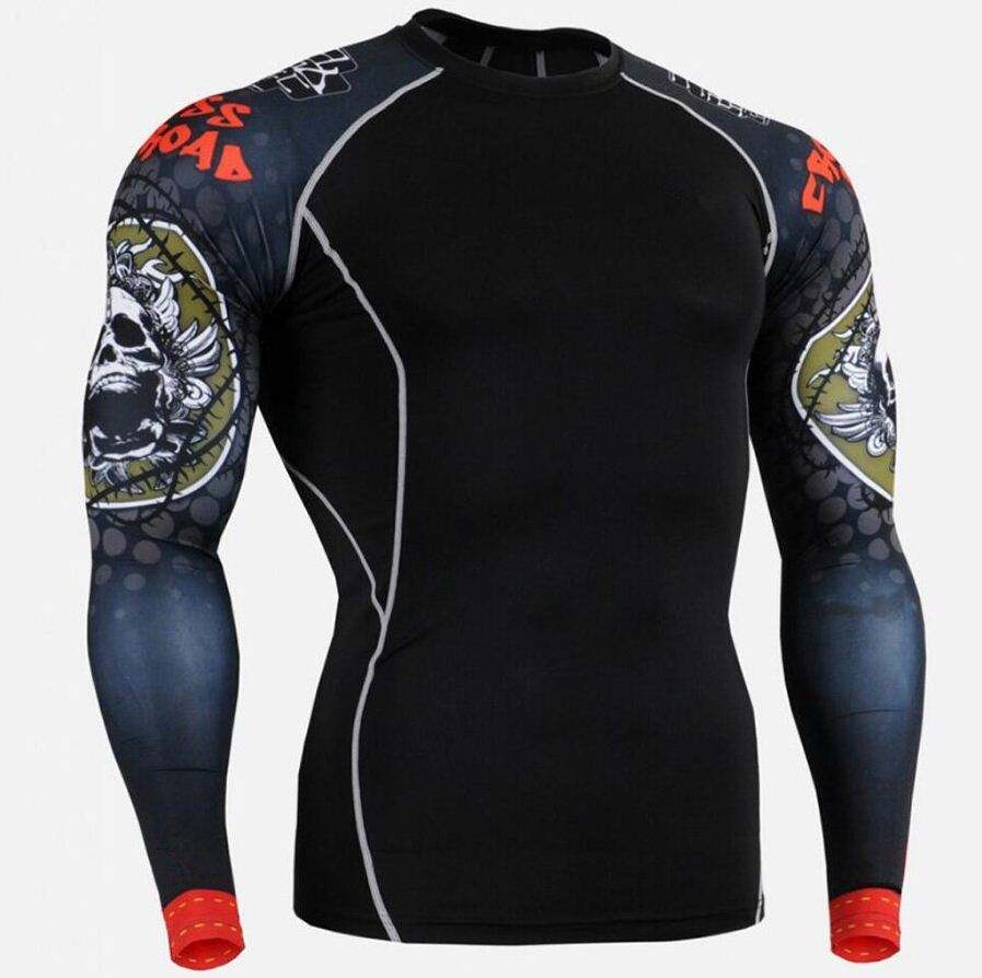 เสื้อรัดกล้ามเนื้อแขนยาวสำหรับผู้ชาย ป้องกันรังสียูวี แห้งเร็ว เหมาะสำหรับ MMA ออกกำลังกาย น้ำหนักเบา ระบายอากาศได้ดี ผ้าเนื้อยืดหยุ่น