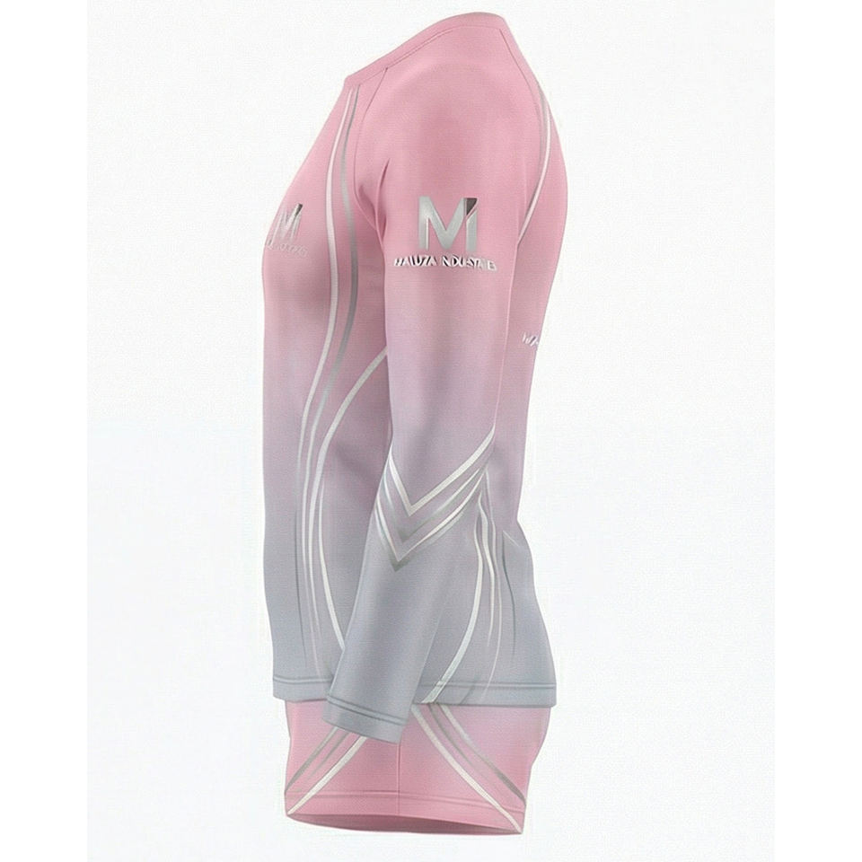 ชุดยูนิฟอร์มเชียร์ลีดเดอร์ผ้าโพลีเอสเตอร์พิมพ์ลายประสิทธิภาพสูง เสื้อแขนยาว กางเกงขาสั้น ชุดฝึกซ้อมและแข่งขันระดับมืออาชีพ