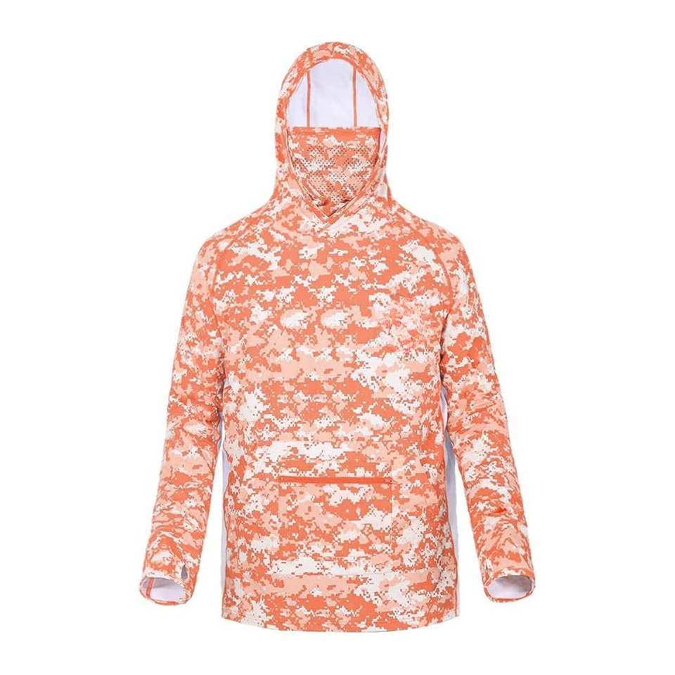 เสื้อฮู้ดสำหรับตกปลาแขนยาวผ้าแห้งเร็วพร้อมหน้ากากเสื้อฮู้ดป้องกัน UV พิมพ์ลายตามสั่ง