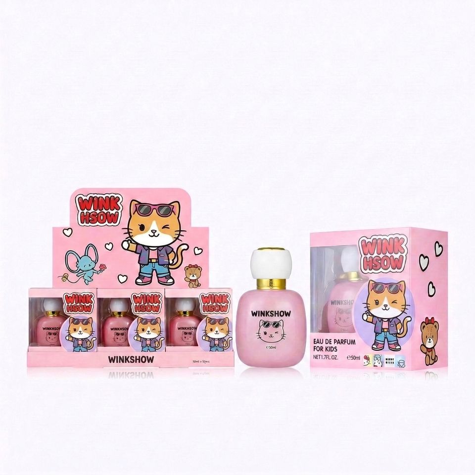 น้ำหอมแบบกำหนดเองได้ ขั้นต่ำ 100 ชิ้น ขวดแก้วรูปแมวสีชมพู น้ำหอมสำหรับเด็ก กลิ่นเลมอน น้ำหอมเด็ก