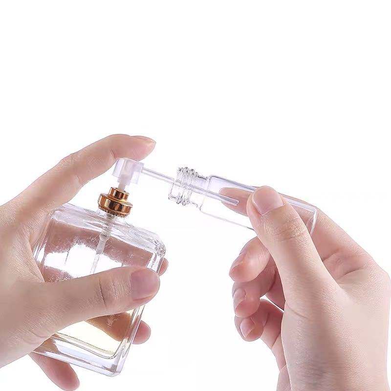 ขวดสเปรย์น้ำหอมแบบพกพาพร้อมท่อพลาสติกสำหรับเติมน้ำหอมเดินทาง ขนาด 50 มล. บรรจุภัณฑ์เครื่องสำอางขนาดเล็ก