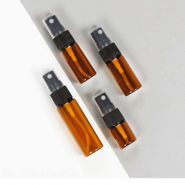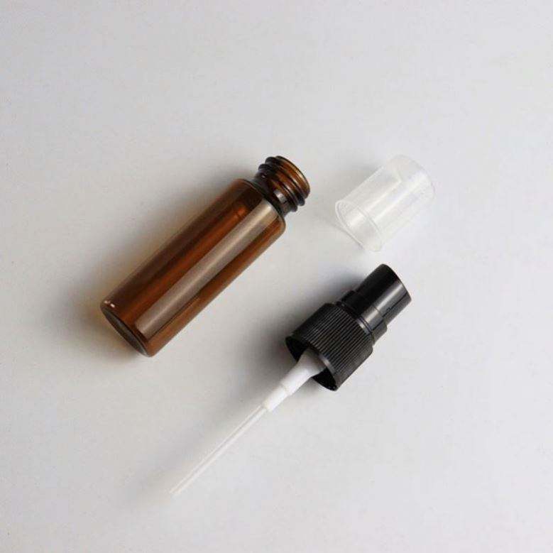 ขวดสเปรย์เติมน้ำหอมแบบปั๊ม ขนาด 5 มล./10 มล./15 มล./20 มล. ขวดแก้วใส/ขวดแก้วสีชา ฝาพลาสติก ปรับแต่งได้ พิมพ์สกรีนได้ 100 ชิ้น ขวดเปล่า