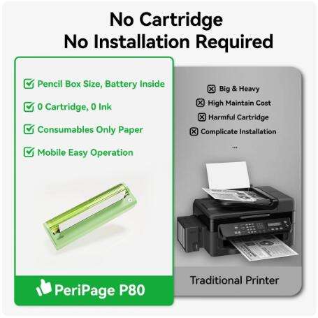 เครื่องพิมพ์ความร้อนแบบพกพา PeriPage P80 ขนาด A4 สำหรับพิมพ์ไร้สาย เหมาะสำหรับการเดินทาง สำนักงาน โรงเรียน และบ้าน รองรับแอป IOS และ Android ความละเอียด 203 และ 304dpi