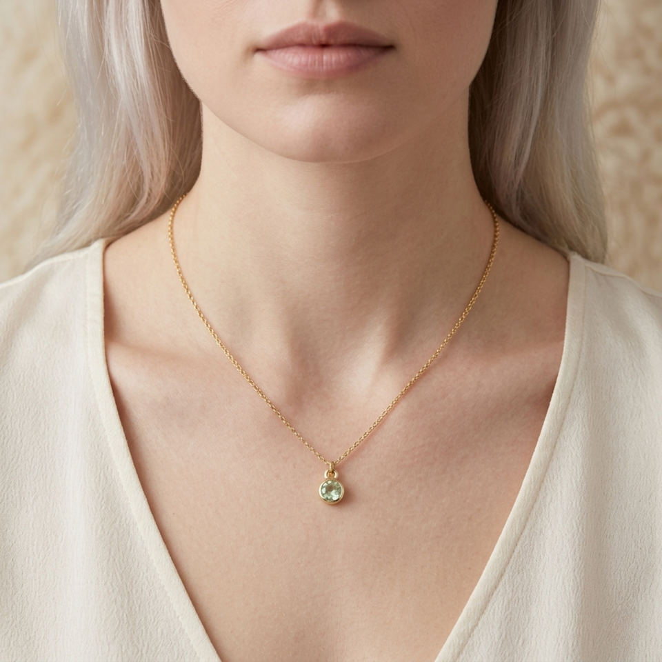 Peridot 5 MM With Bail Round Shape Silver Bezel Gold Plated Pendant