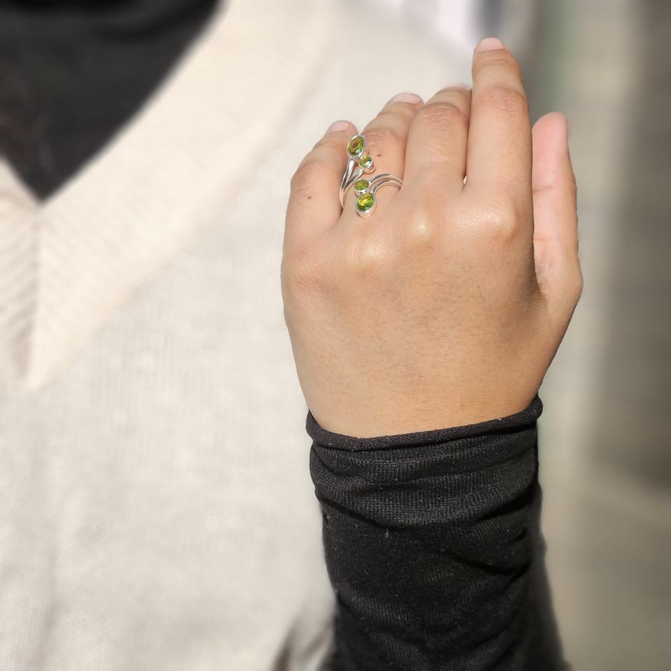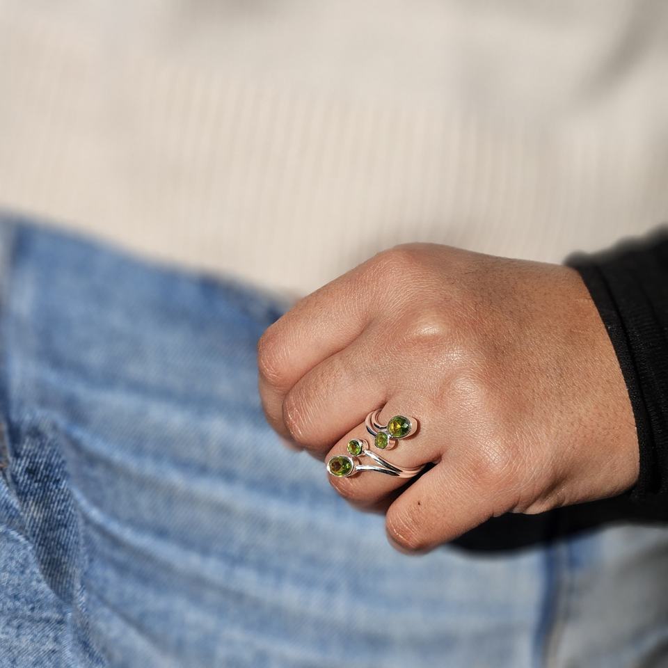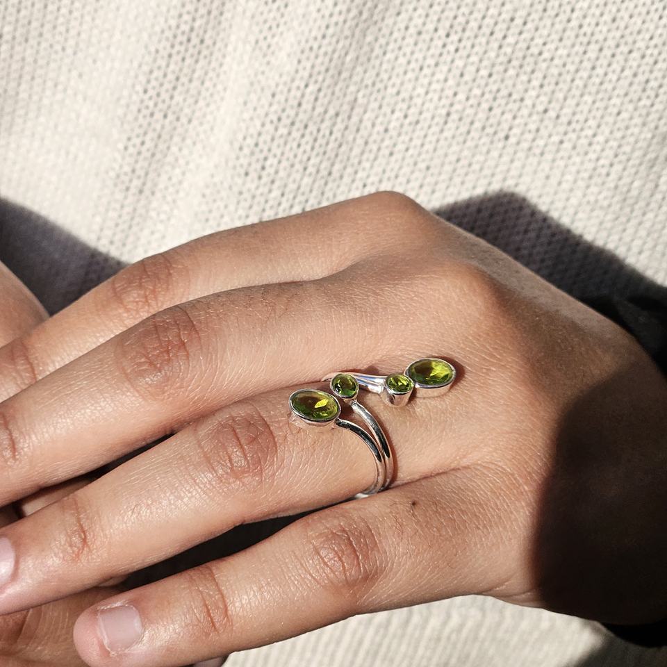 แหวนเงินปรับได้เพอริโดทแหวนเงินสองวงปรับได้สวมแหวนเงินปรับได้
