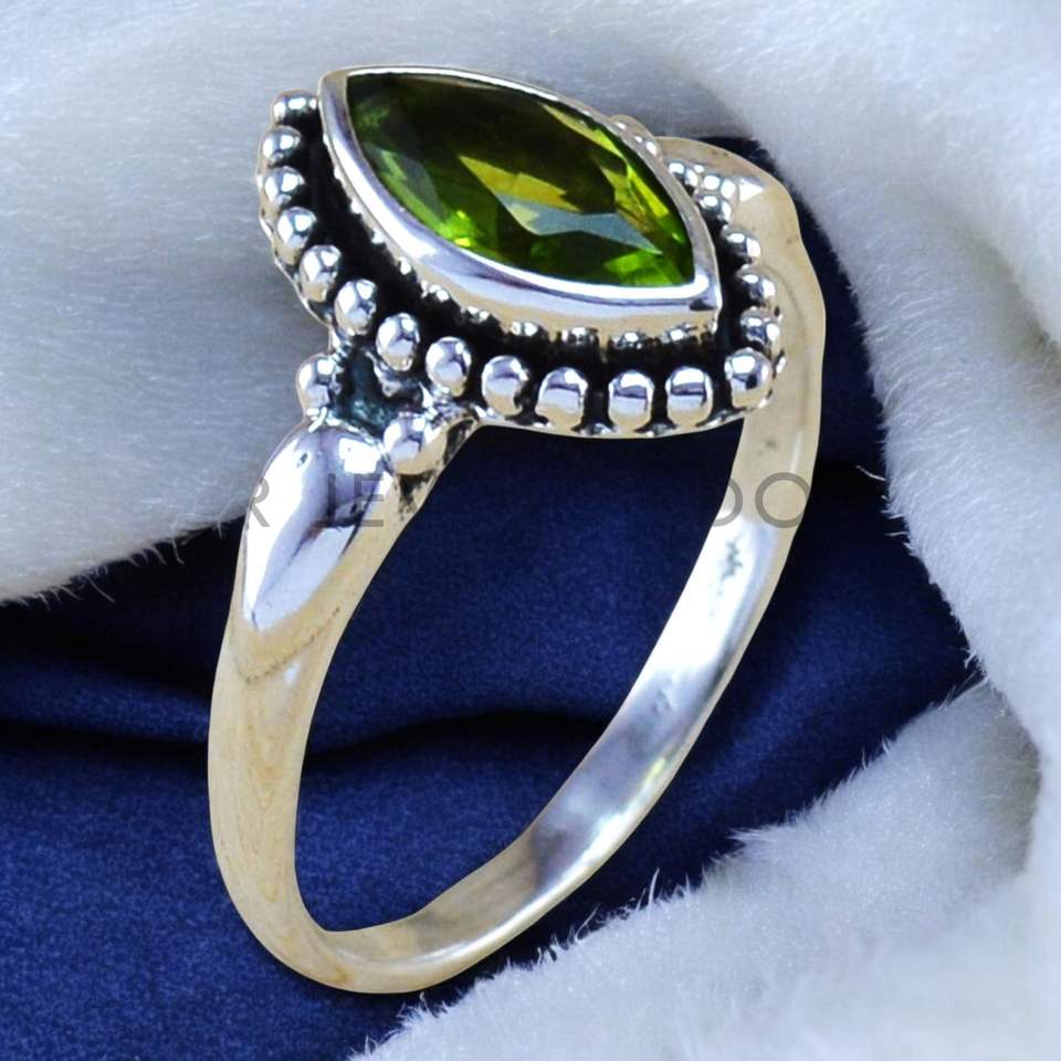 Peridot Gemstone 925 Sterling Silver Rings With Marquise Cut Design Fine Handmade Jewelry Wholesale Bulk Silver Rings For Women