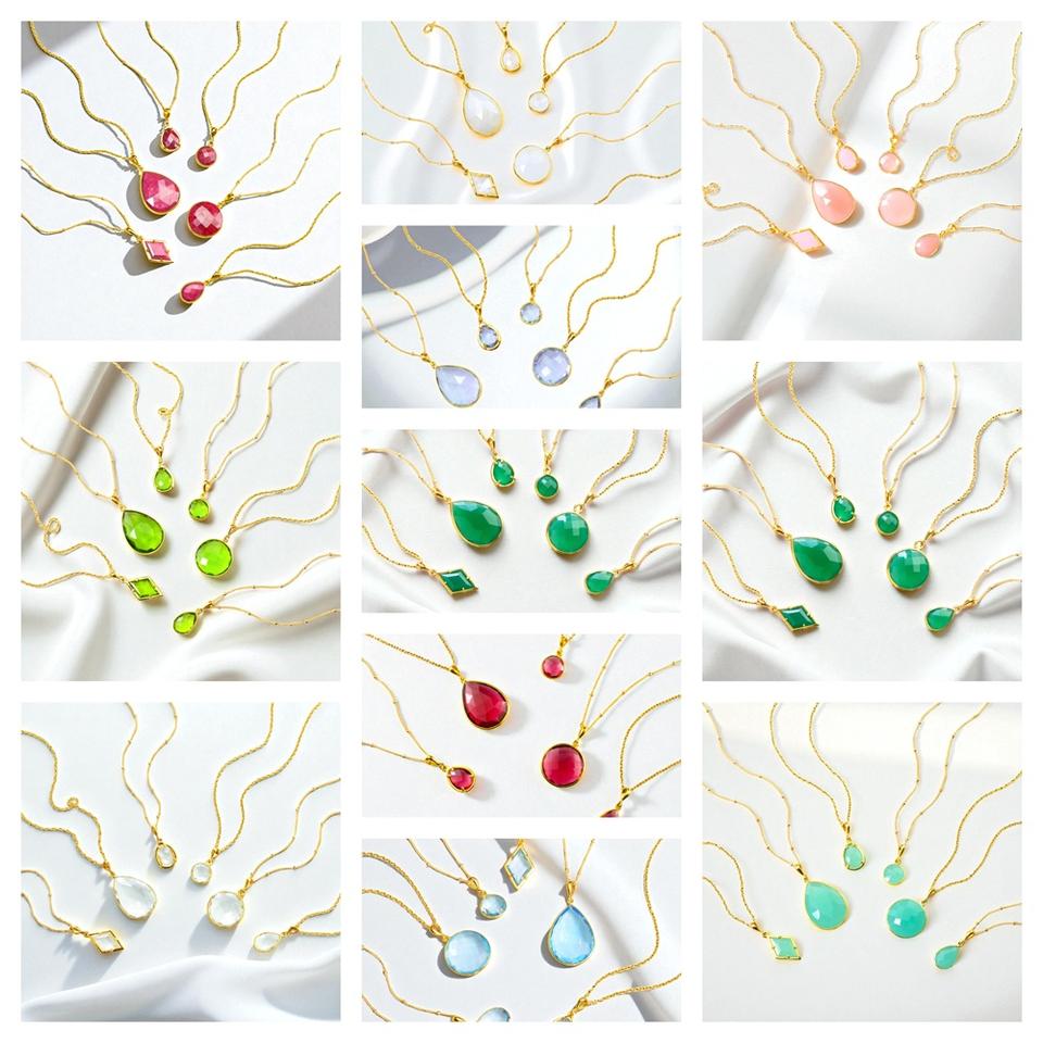 สร้อยคอจี้รูปหยดน้ำเพอริดอตเครื่องประดับทองเหลืองทำด้วยมือทำด้วยมือทำด้วย925จี้เพชรเป็นหินหลัก