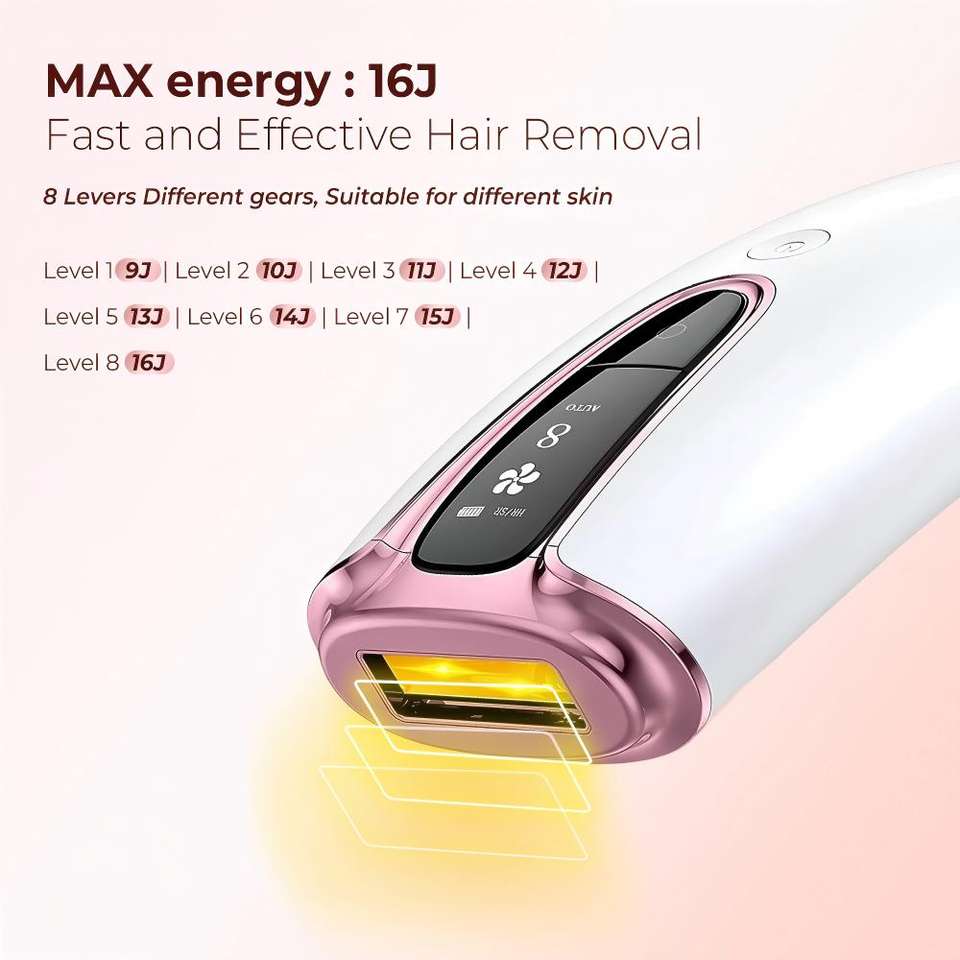 เครื่องกำจัดขนถาวรสำหรับร่างกาย บิกินี่ ใบหน้า ขา หลัง ริมฝีปาก แขน รักแร้ พร้อมแว่นตา สำหรับผู้หญิง เครื่องกำจัดขน 3 in 1 แบบ IPL