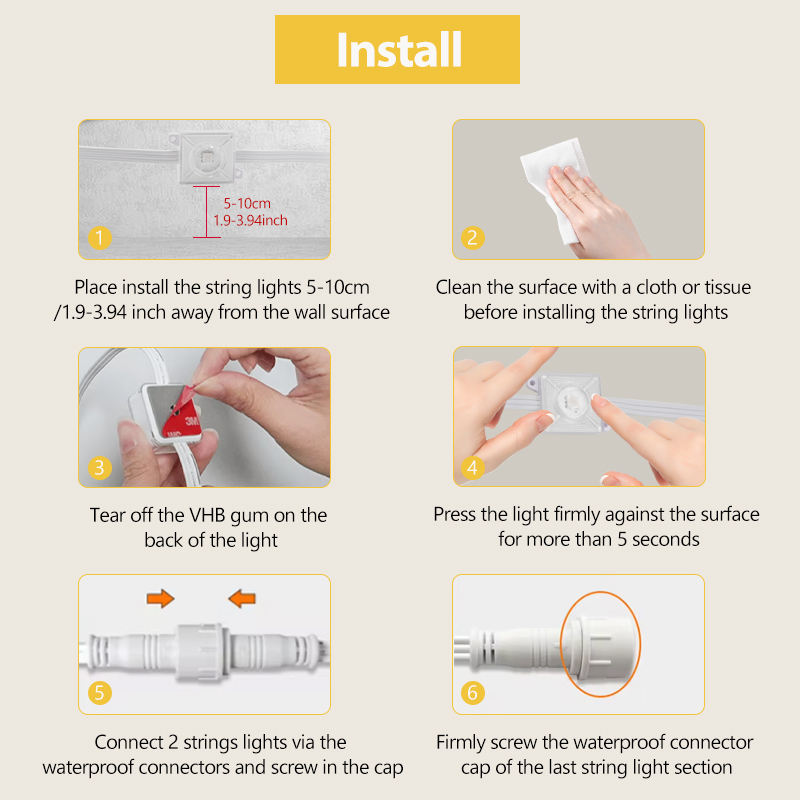 ไฟภายนอกอาคารแบบถาวร ควบคุมผ่านแอปอัจฉริยะ ไฟ RGB IC สำหรับภายนอกอาคาร กันน้ำระดับ IP67 ไฟ LED สำหรับติดชายคา