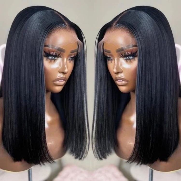 วิกผม perruque BOB humain ผมคู่หน้า13x4HD ลูกไม้ก่อนถอนกระดูกตรงบ๊อบสีดำธรรมชาติ10 "ผมบราซิล