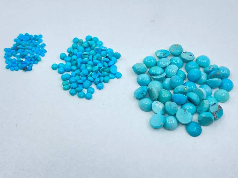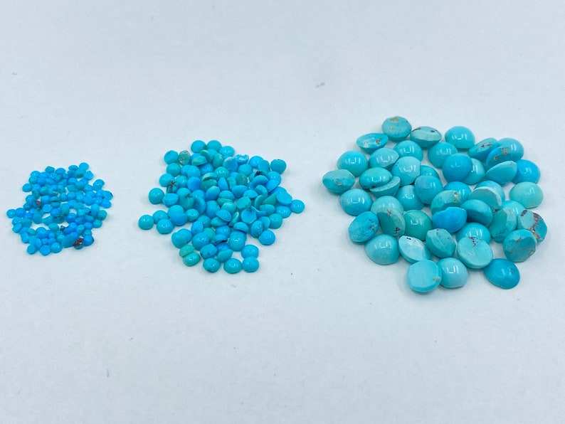 พลอยเทอร์ควอยซ์เปอร์เซียทรงกลมแบบคาโบชอง ขนาดต่างๆ คละไซส์ สำหรับทำเครื่องประดับ