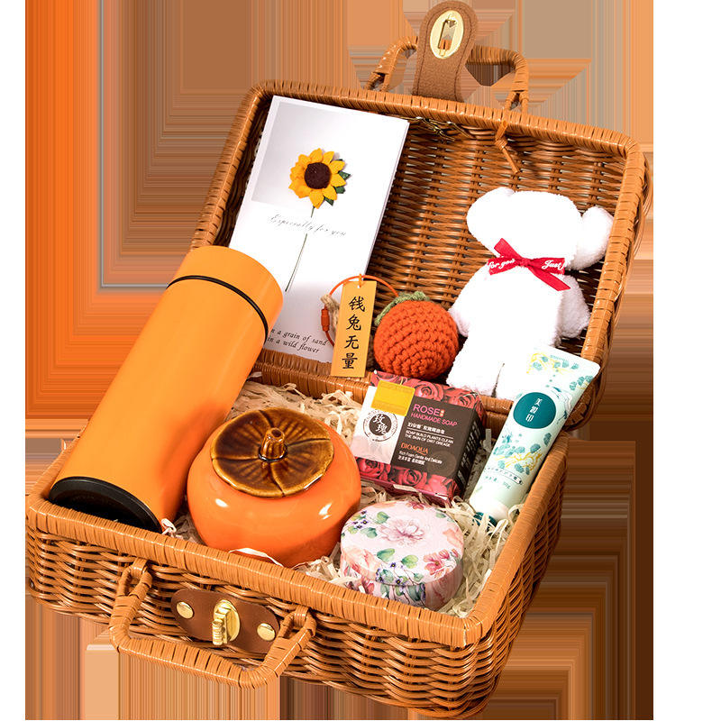 ชุดของขวัญหวายลายลูกพลับมงคล ตะกร้าเก็บของทรงสี่เหลี่ยมพร้อมหูหิ้ว สำหรับบรรจุของขวัญ ของขวัญส่วนตัว