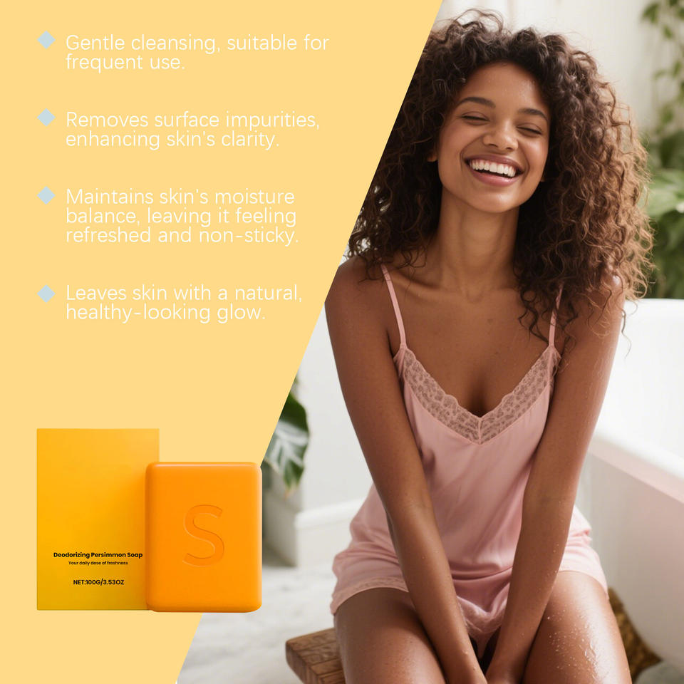 สบู่อาบน้ำลูกพลับที่มีส่วนผสมที่อ่อนโยนช่วยทำความสะอาดร่างกายและผิวมีกลิ่นหอมสดชื่นและไม่เหนียวเหนอะหนะสบู่ดูแลประจำวัน