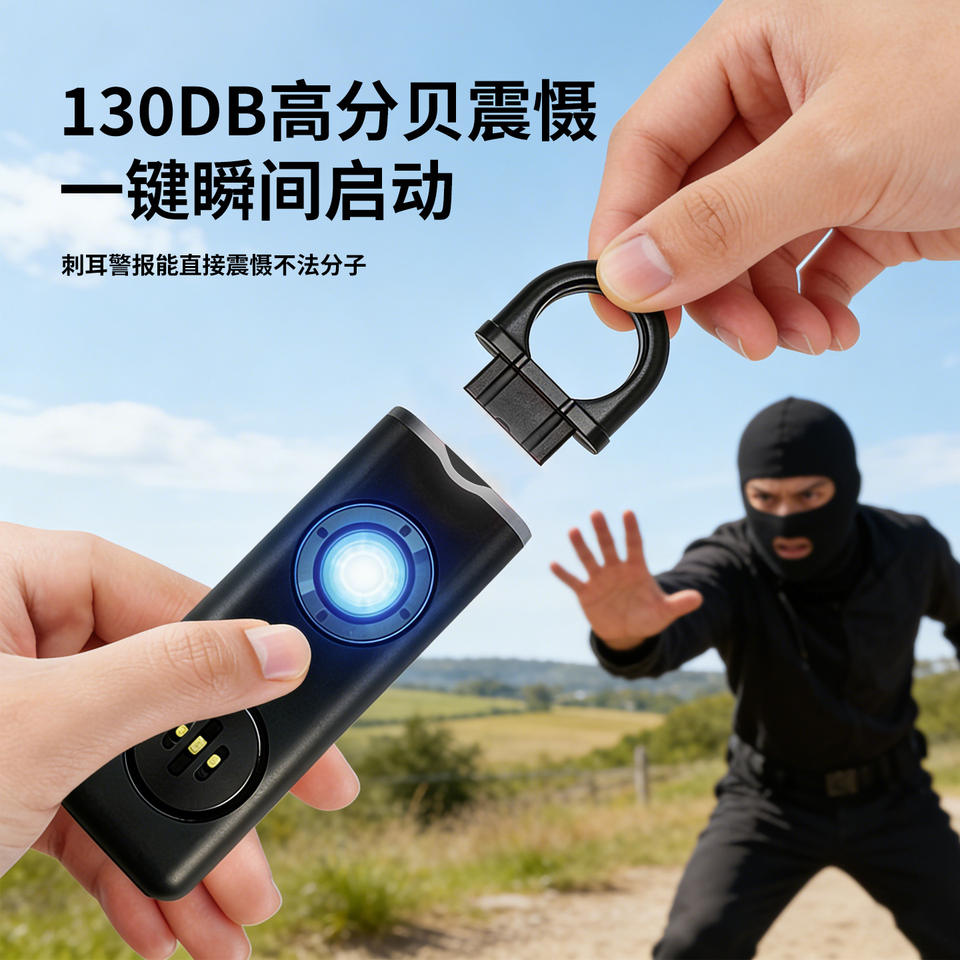 สัญญาณเตือนภัยส่วนบุคคลแบบพกพา ชาร์จซ้ำได้ 130 เดซิเบล เสียงดังสูง สำหรับผู้หญิง เด็ก ป้องกันตัว ใช้งานกลางแจ้ง