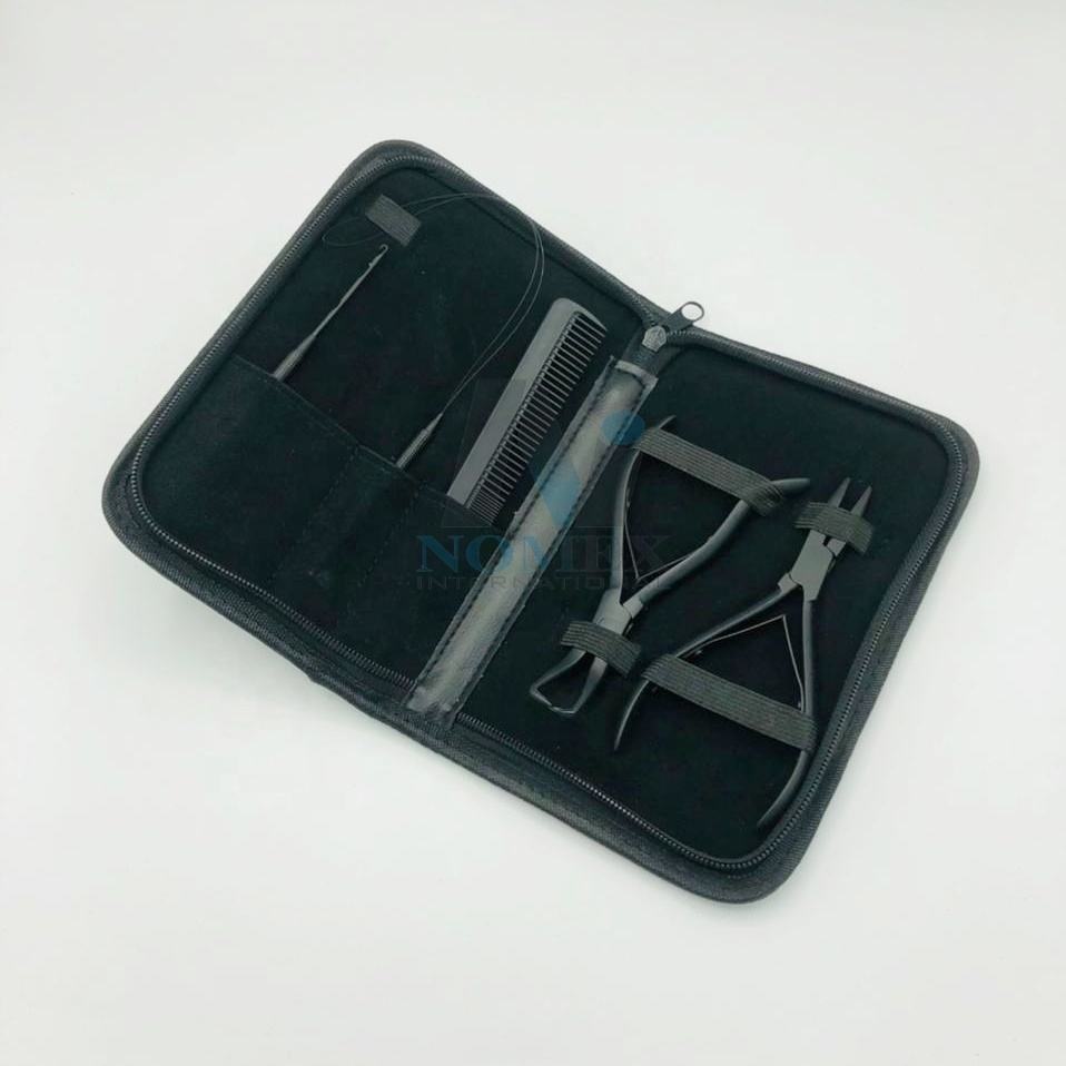 ที่หนีบผมสแตนเลสสีดำด้านแบบโซ่ พร้อมเข็มเกี่ยวไมโครลิงค์ หวีเกี่ยวผมต่อแบบห่วง NOMEX