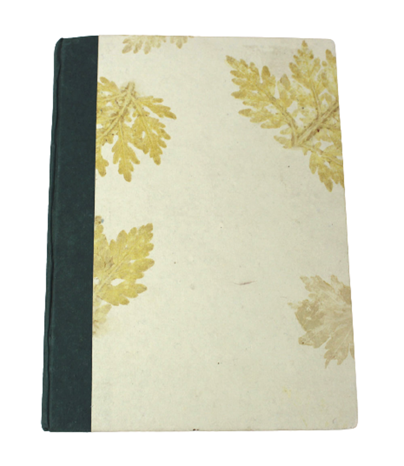 สมุดบันทึกปกแข็งสีครีมพร้อมกระดาษลายใบไม้ธรรมชาติทั่วทั้งเล่ม ปกสีดำ