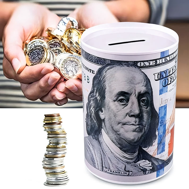 กระปุกออมสินโลหะแบบมีฝาปิดที่ถอดออกได้ สำหรับเก็บเงินเหรียญหรือธนบัตร สามารถสลักชื่อได้