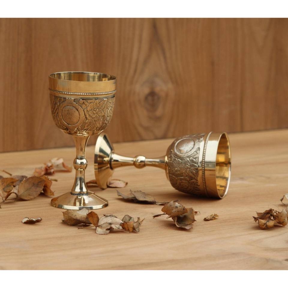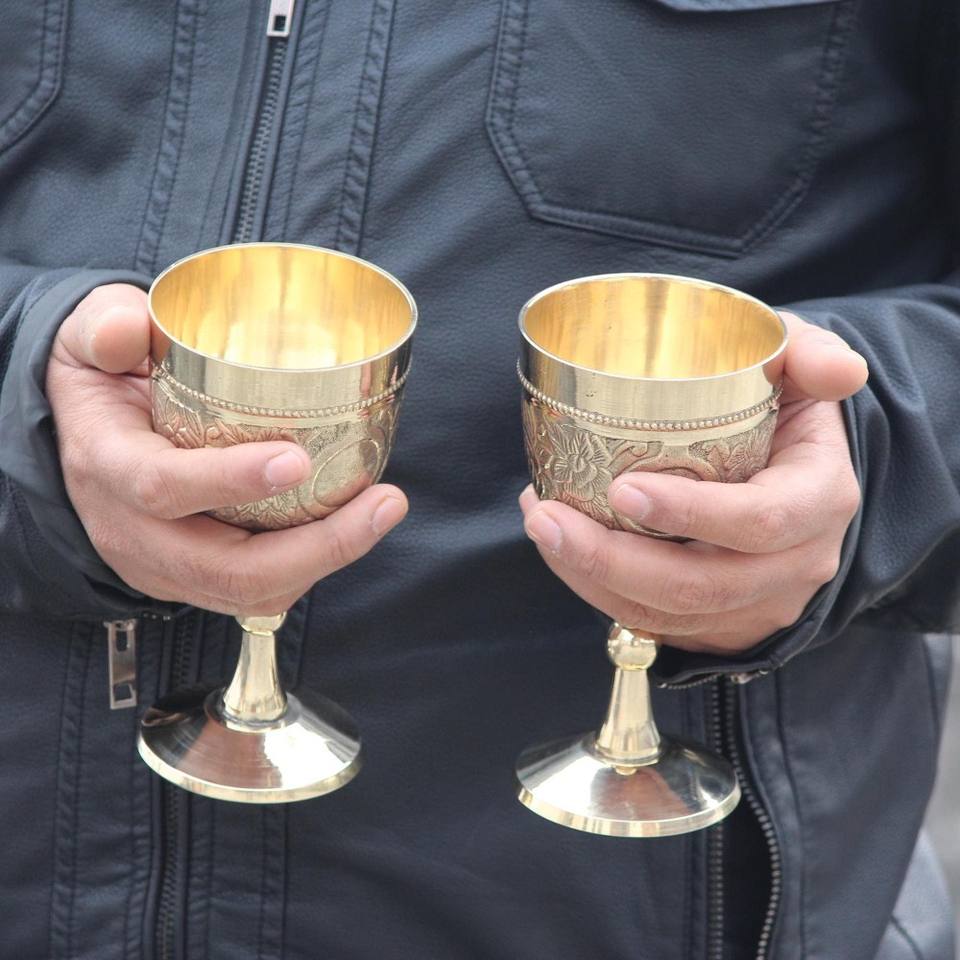 ถ้วยถ้วยทองเหลืองมีลายนูนถ้วยไวน์ทำมือสำหรับโรงแรมบ้านและร้านอาหาร
