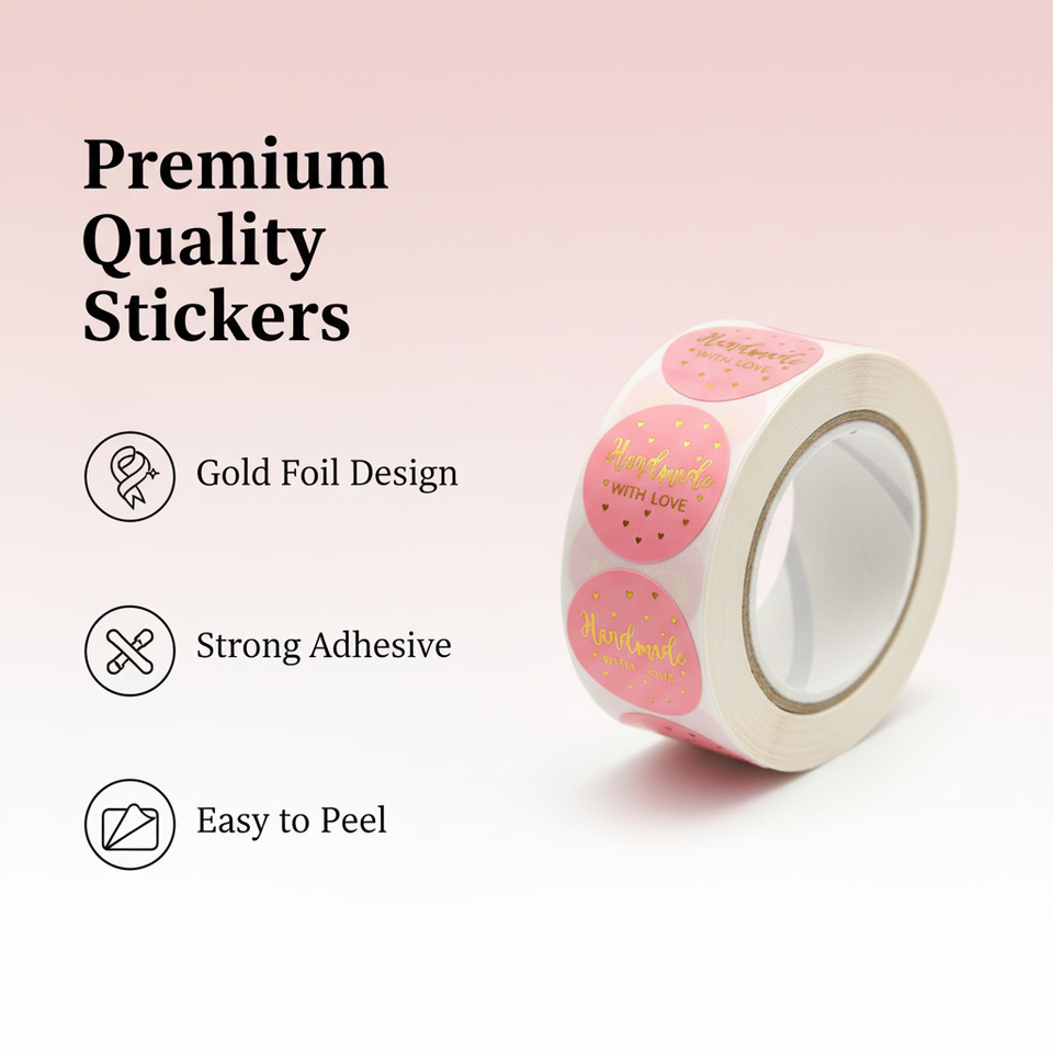 สติกเกอร์โลโก้วงกลมแบบกำหนดเอง พิมพ์ลายกันน้ำ ติดด้วยตนเอง วัสดุ PLA กระดาษเคลือบทอง ลอกออกง่าย บรรจุภัณฑ์แบบม้วน