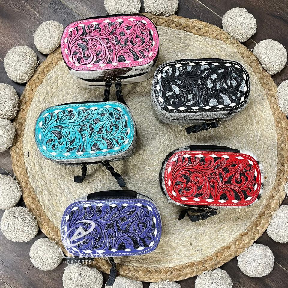 กล่องใส่เครื่องประดับหนังวัวแท้ทำมือลายดอกไม้สไตล์ตะวันตก กระเป๋าเดินทางแบบพกพา เหมาะสำหรับผู้หญิง