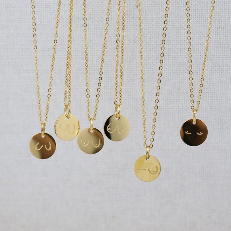สร้อยคอทองคำแท้ 18k ป้องกันการหมอง ดีไซน์เฉพาะตัว พร้อมจี้รูปทรงหน้าอก สไตล์เฟมินิสต์ สำหรับผู้หญิง