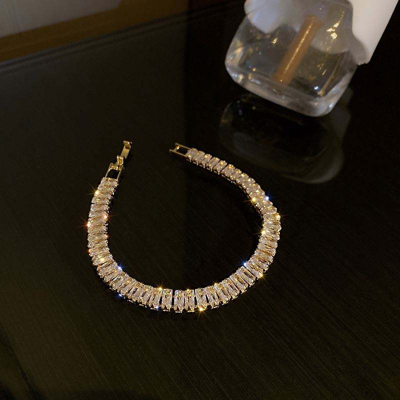 กำไลข้อมือเซอร์คอนกลิตเตอร์สำหรับผู้หญิงสร้อยข้อมือคริสตัลชุบทองทันสมัย