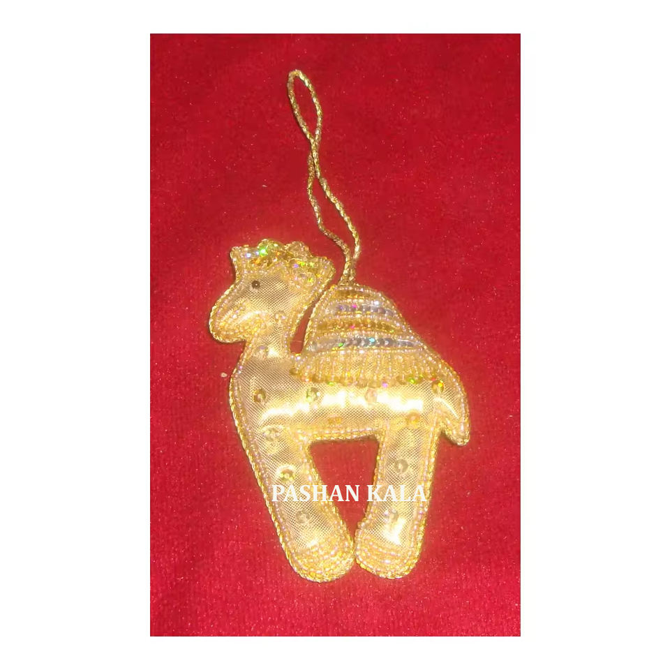 เครื่องประดับรูปอูฐแบบระเหิดออกแบบได้ตามต้องการเครื่องประดับลูกปัดสีทองงานปักดีไซน์ทำด้วยมือสินค้าคริสต์มาส