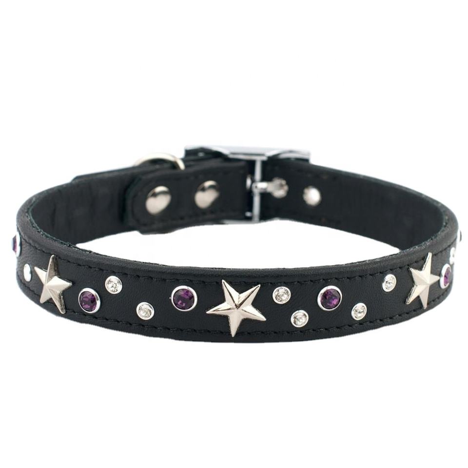 ปลอกคอสุนัขหนังแท้ 100% แบบสั่งทำพิเศษ ประดับคริสตัลและดาวคอนโชส์ มีทุกขนาด