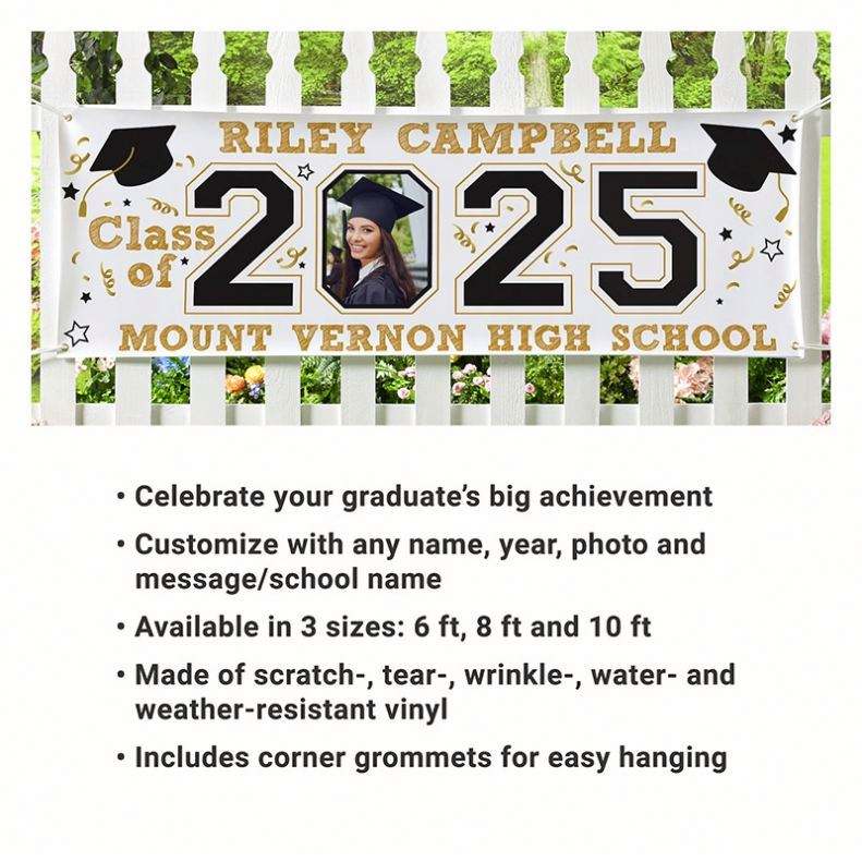 ของตกแต่งผนังงานเลี้ยงฉลองสำเร็จการศึกษาปี 2025 แบบส่วนตัว พร้อมแบนเนอร์พิมพ์รูปภาพ