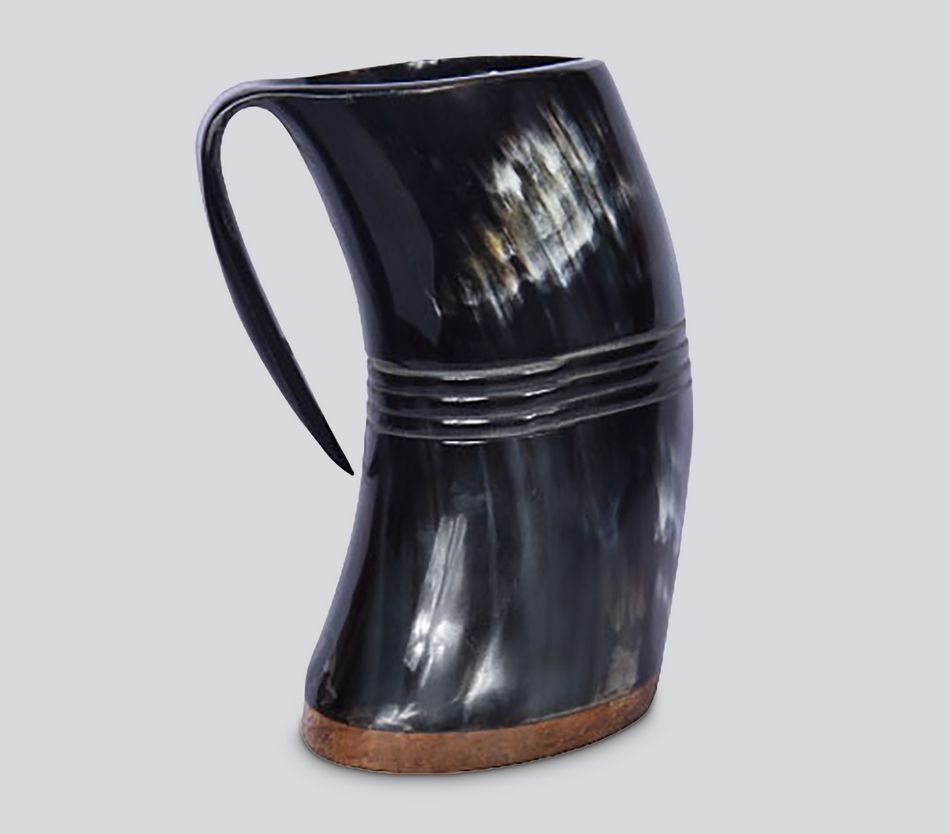 แก้วน้ำทำจากเขาควายแท้ พร้อมหูจับในตัว สีดำล้วน ดีไซน์สไตล์ไวกิ้ง สำหรับเบียร์และมี้ด