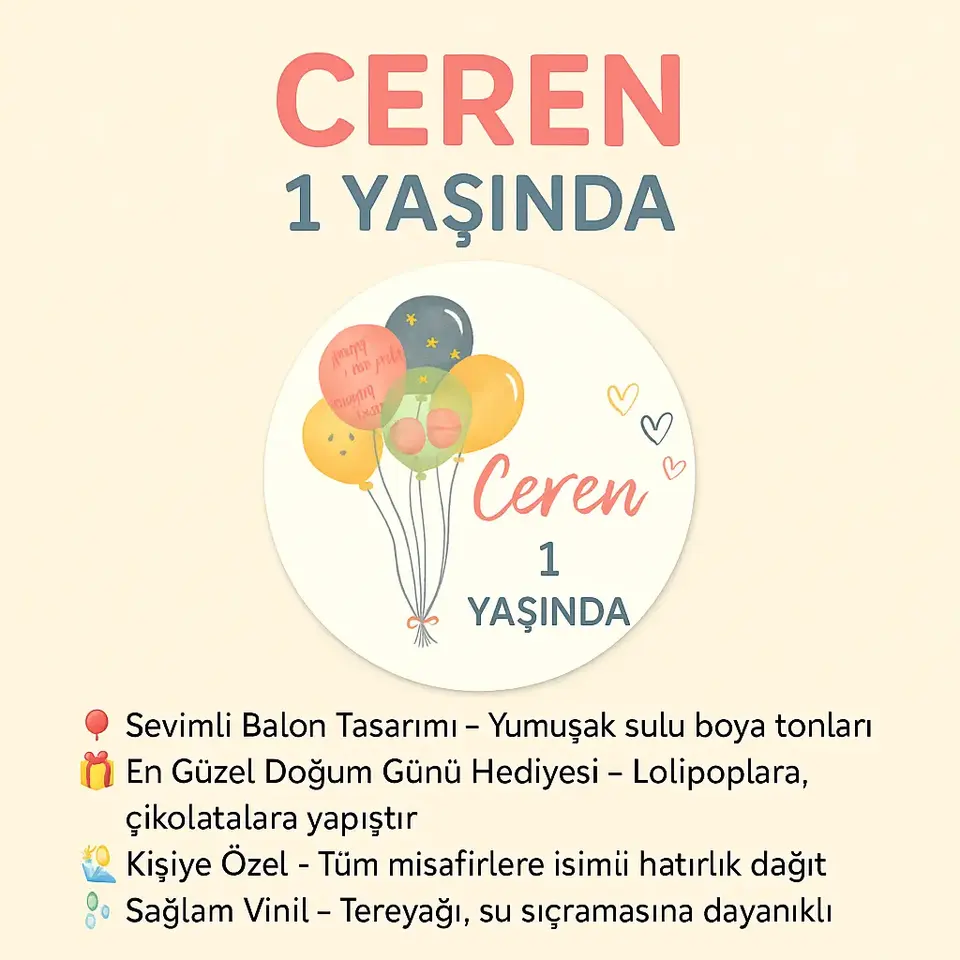 Kiiye zel Ya Balon Temal Doum Gn สติ๊กเกอร์ 3 3 ซม. (50li)ชื่อสินค้า