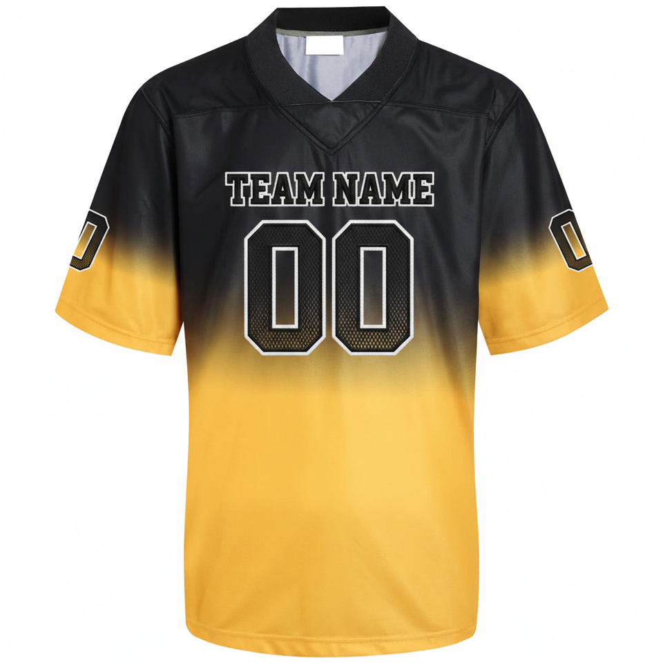 เสื้อฟุตบอลอเมริกันแบบสั่งทำพิเศษ พิมพ์ลายแบบซับลิเมชั่น โลโก้ทีมตามสั่ง ระบายเหงื่อได้ดี คอวี แขนครึ่งตัว สำหรับทุกเพศ