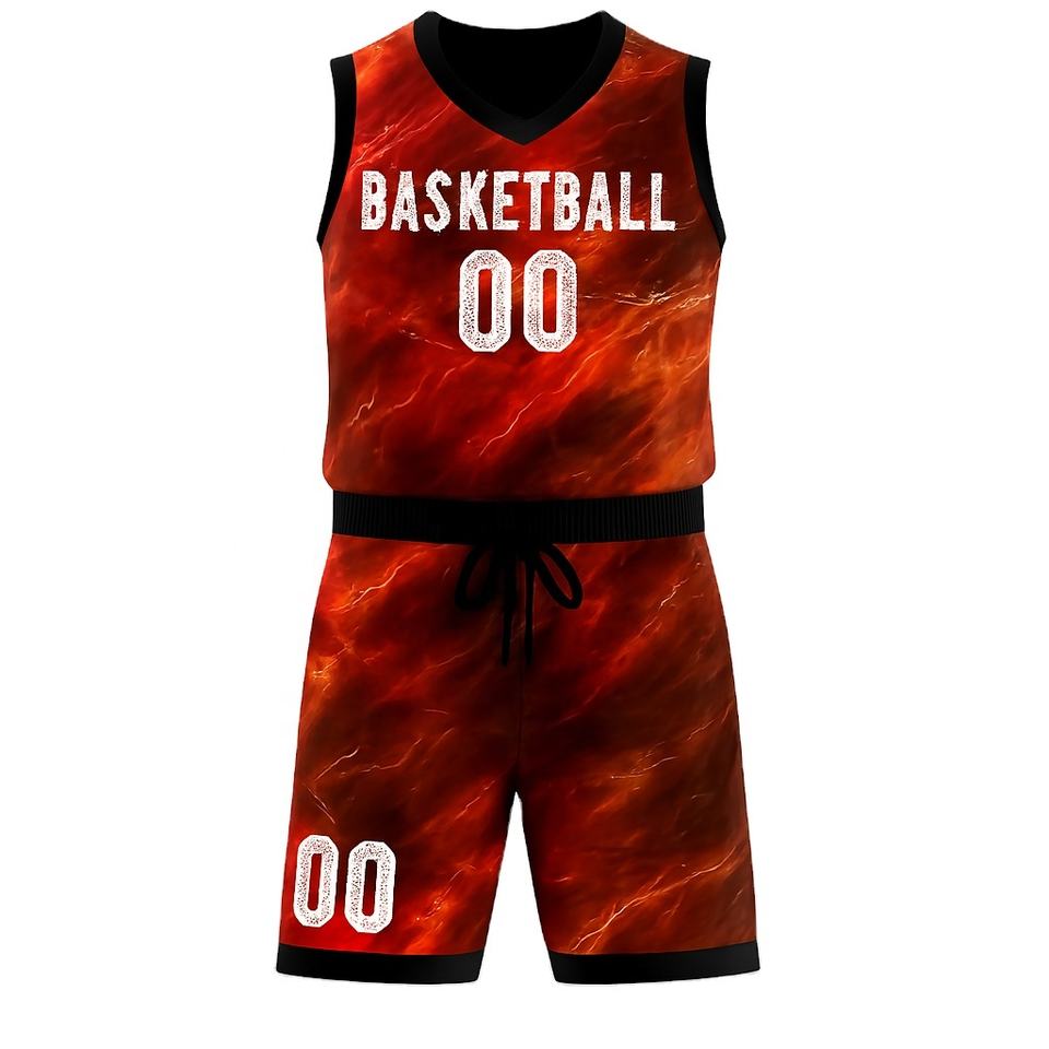 ชุดบาสเก็ตบอลแบบมีรูปร่างเหมือนทีมชุดบาสเก็ตบอลมีหมายเลขและกางเกงขาสั้นสไตล์กราฟิกสายฟ้าผ่าแบบกำหนดเอง