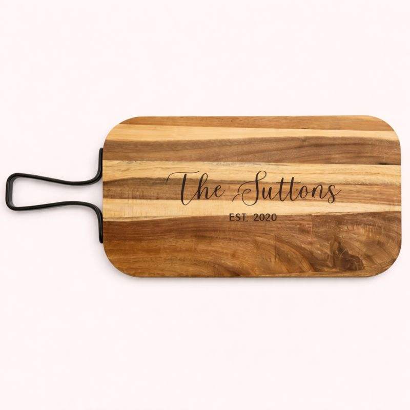 เขียงหั่นอาหารแบบสั่งทำพิเศษพร้อมด้ามจับโลหะแข็งแรง พื้นผิวเรียบลื่น เหมาะสำหรับการเตรียมอาหาร การเสิร์ฟ และการให้เป็นของขวัญ
