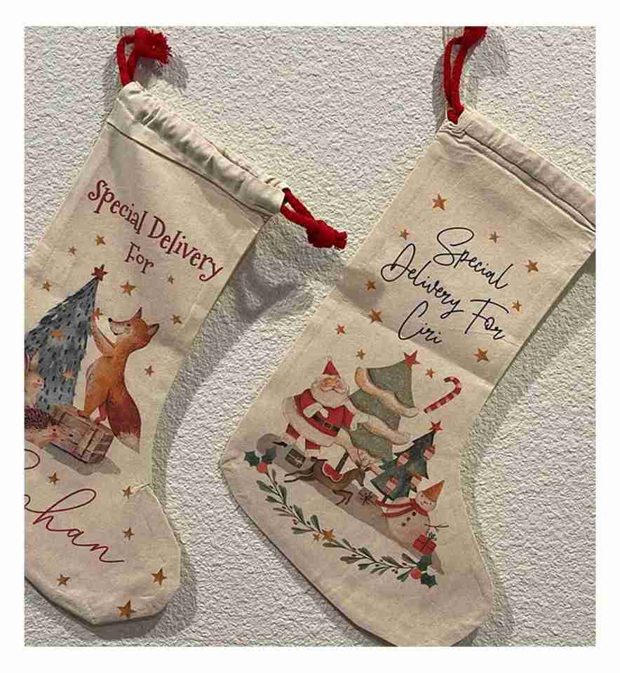 ถุงเท้าคริสต์มาสส่วนบุคคล | ถุงเท้าคริสต์มาสแบบกำหนดเอง | ถุงน่องวันหยุดสีสันสดใสสำหรับเด็กและครอบครัว