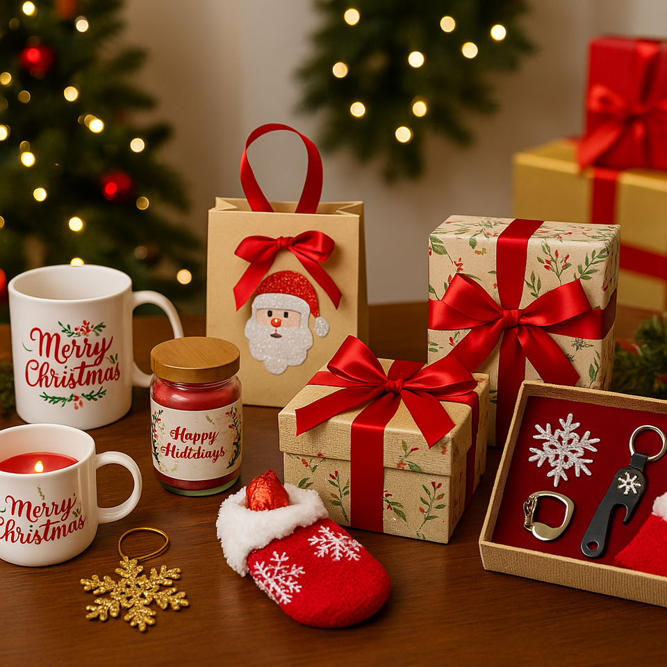 ถุงของขวัญคริสต์มาสแบบกำหนดเอง ของพรีเมียมส่งเสริมการขาย ของที่ระลึกพร้อมโลโก้ตามสั่ง สำหรับแจกในงานขอบคุณลูกค้า