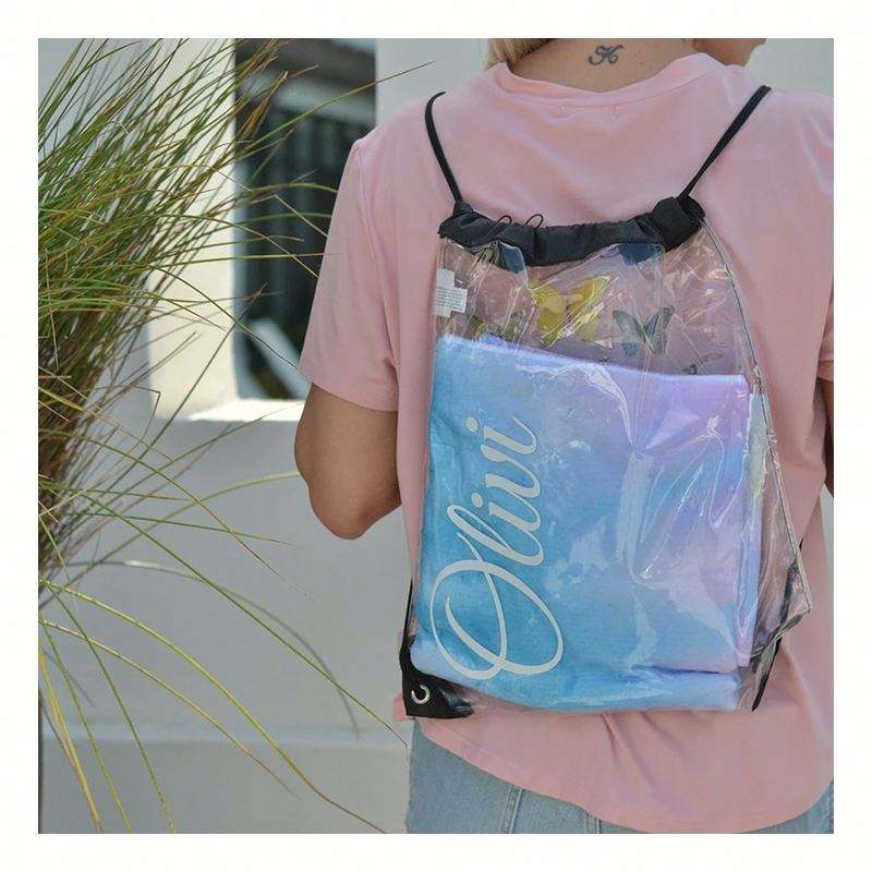 กระเป๋าเชือกรูดลายสนามกีฬาแบบใสส่วนบุคคลเพิ่มชื่อของคุณลงบนสติกเกอร์ไวนิล