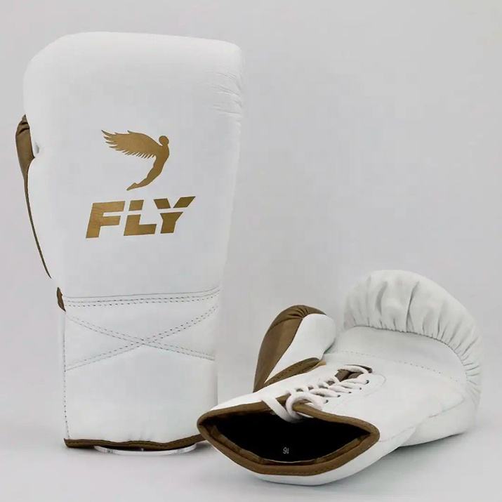 ถุงมือชกมวยแบบผูกเชือก สีสันเฉพาะตัว ลายฟลายบราวน์ไวท์ สปาร์ริก สำหรับการแข่งขัน ขายสำหรับคิกบ็อกซิ่ง มวยไทย ฝึกซ้อมในยิม