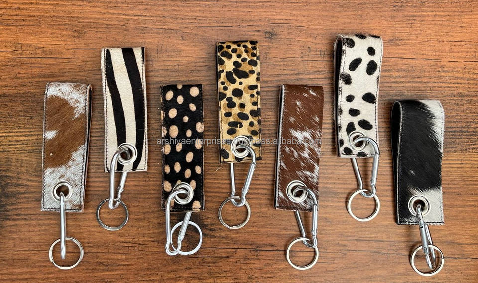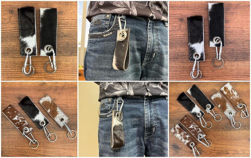 พวงกุญแจคาราบิเนอร์แบบคลิปหนีบเข็มขัดหนังวัวแท้พวงกุญแจสายรัดข้อมือของขวัญ
