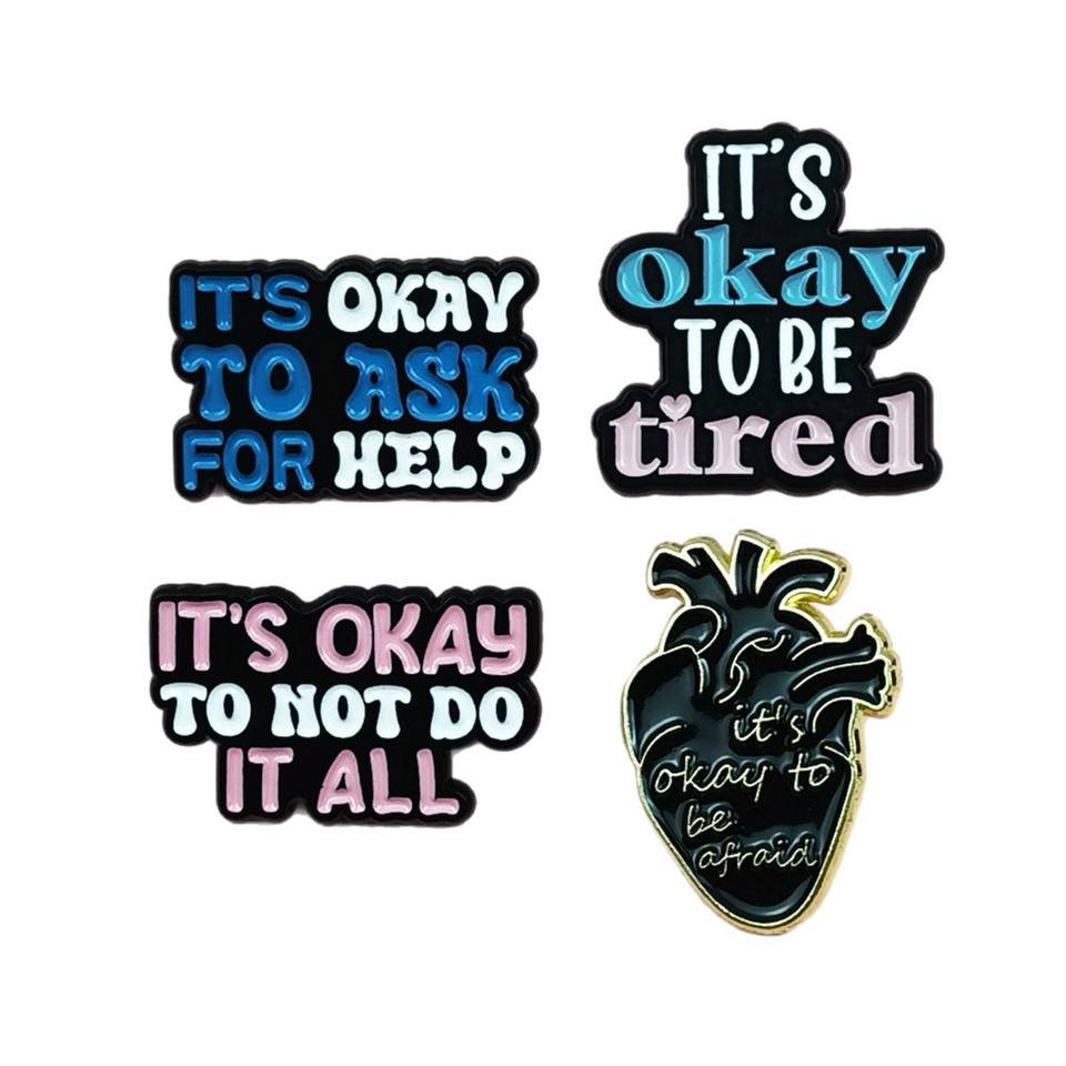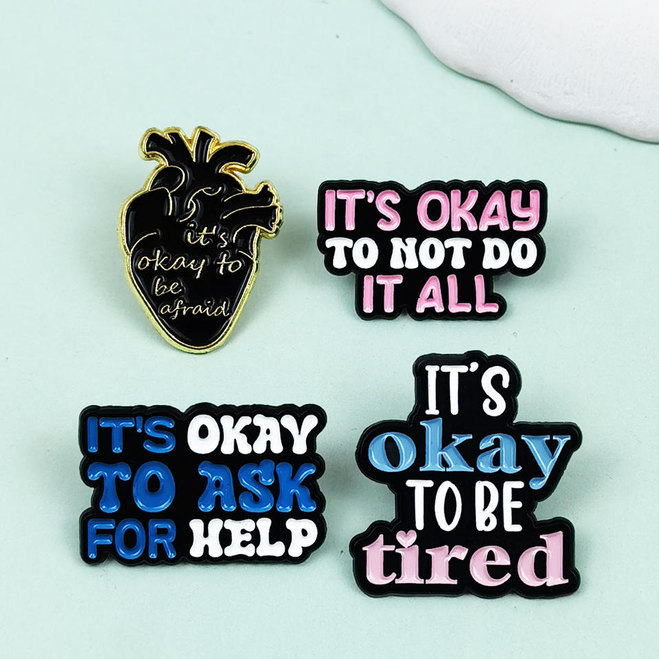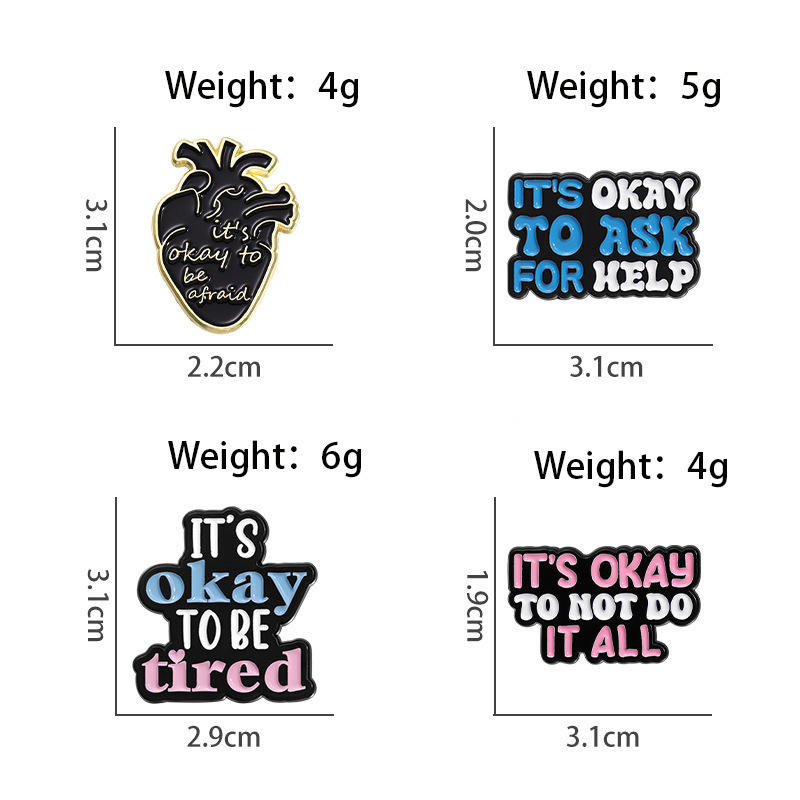 เข็มกลัดคำคมภาษาอังกฤษสร้างสรรค์แบบส่วนตัว, เข็มกลัดรูปหัวใจการ์ตูนโลหะผสมลายหยดน้ำมัน, เข็มกลัดตกแต่งเสื้อผ้า