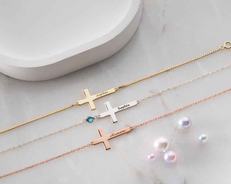 คำหลัก:สร้อยข้อมือชื่อส่วนตัวแบบครอส เครื่องประดับที่ได้แรงบันดาลใจจากความศรัทธา ชื่อที่ปรับแต่งได้