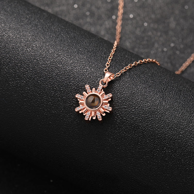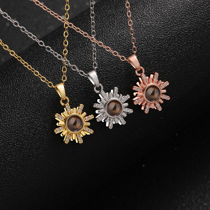 สร้อยคอทองเหลืองแบบกำหนดเองสุดอินเทรนด์ ฉายภาพถ่ายได้ สำหรับผู้หญิง 100 ภาษา ฉันรักคุณ จี้ดอกทานตะวัน เครื่องประดับที่ระลึก